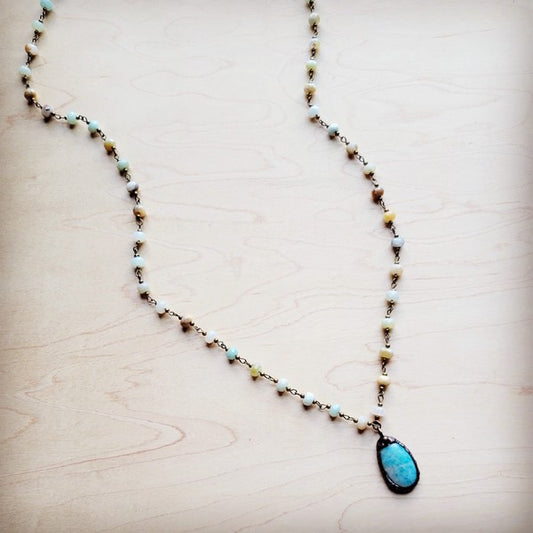 Amazonite Beaded Collar Necklace w/ Indian Pendant