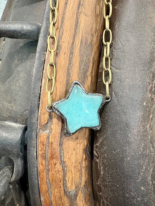 Amazonite Beaded Collar Necklace w/ Indian Pendant