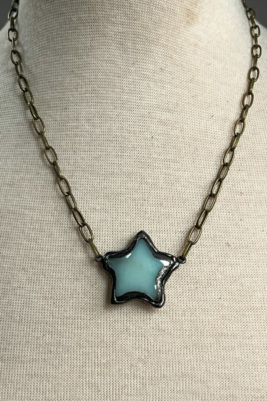 Add some celestial sparkle to your wardrobe with the Aster Necklace in Amazonite! This playful piece features a long, circle chain link with a soldered star pendant. The lobster claw closure and 2" extender make it adjustable for the perfect fit. At 20" in length, it's perfect for layering or wearing on its own. Shine bright like the star you are!