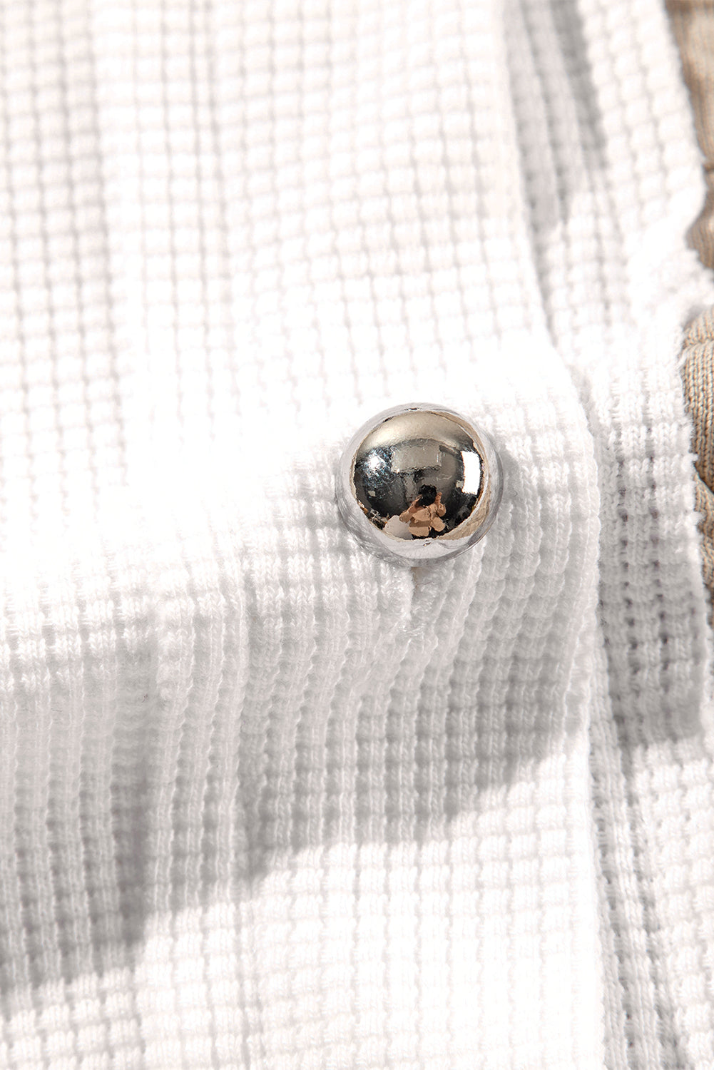 Beige Quilted Textured Patchwork Loose Fit Hooded Jacket