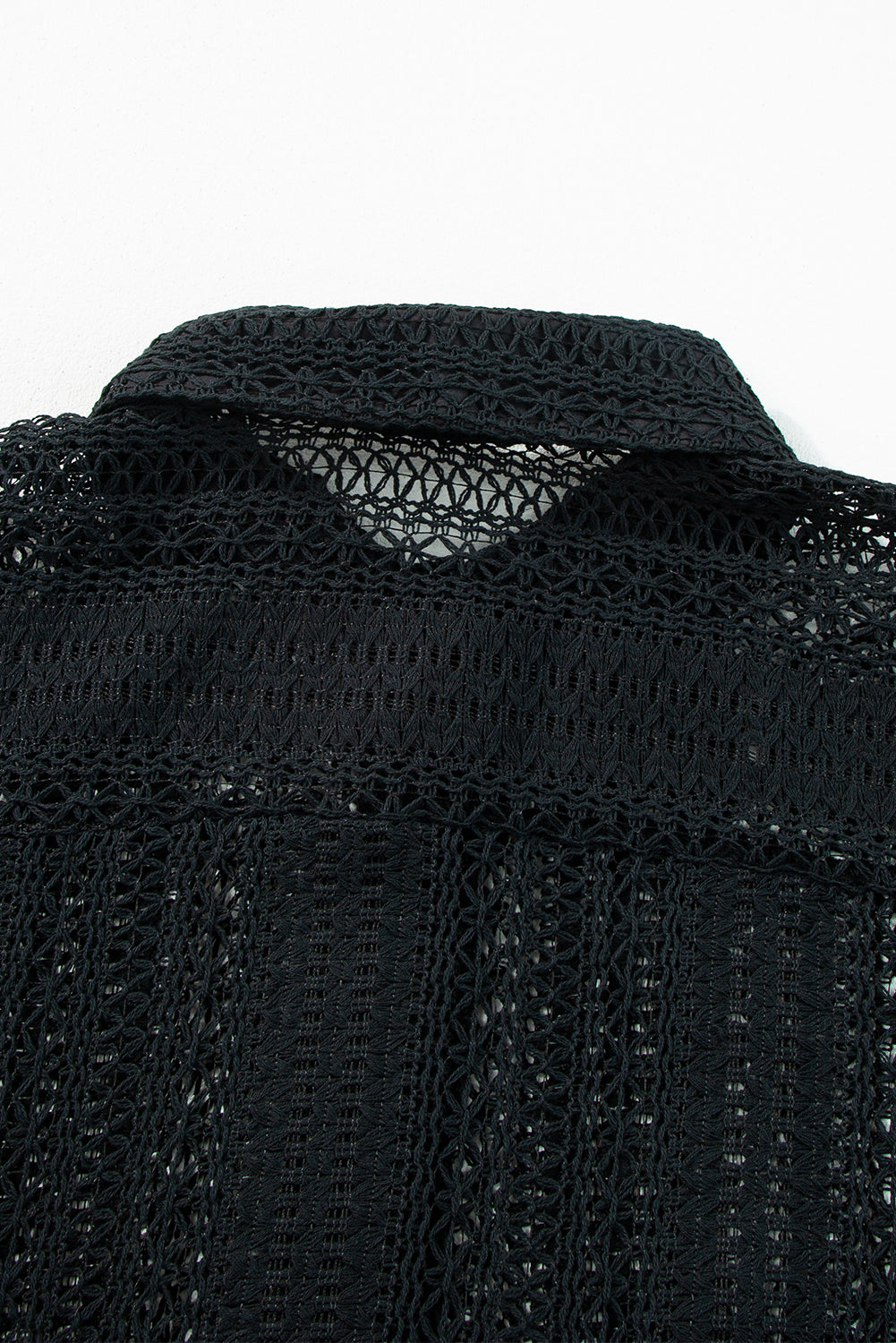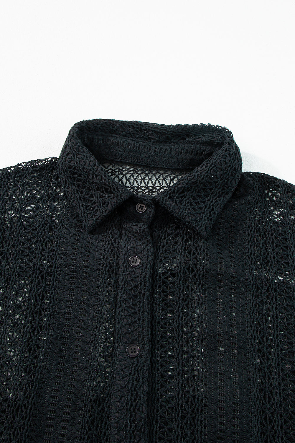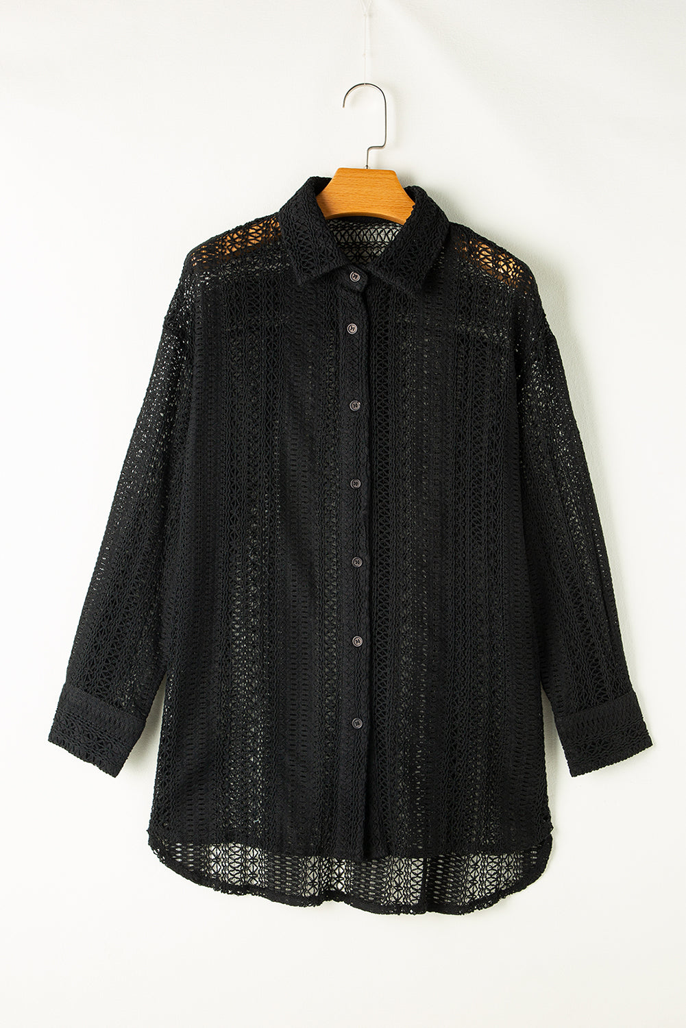 Black Lace Crochet Collared Tunic Oversized Shirt