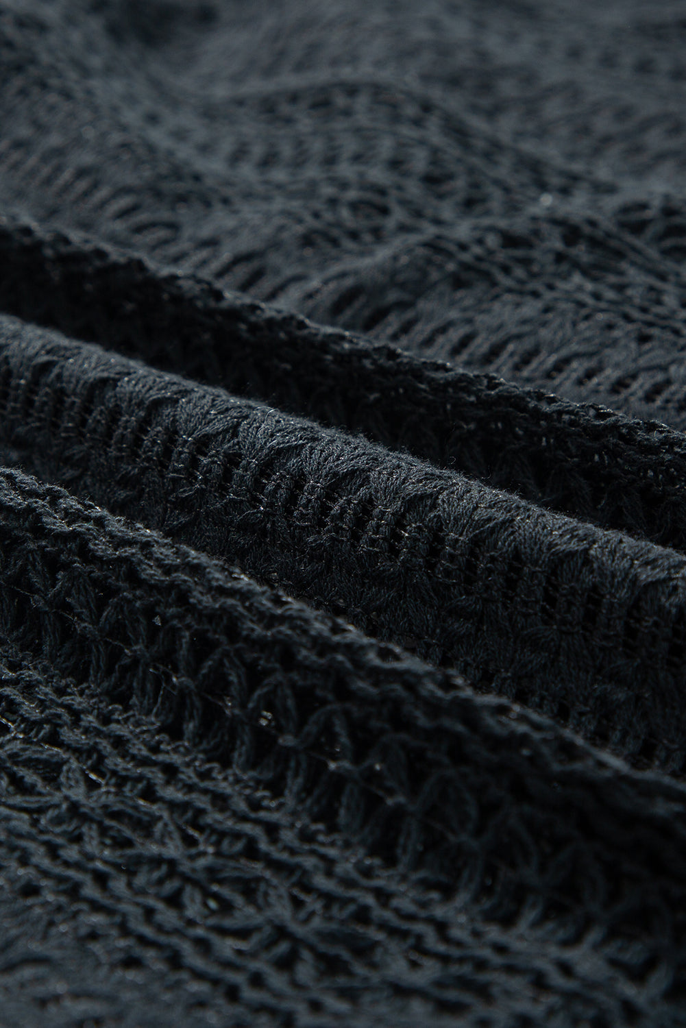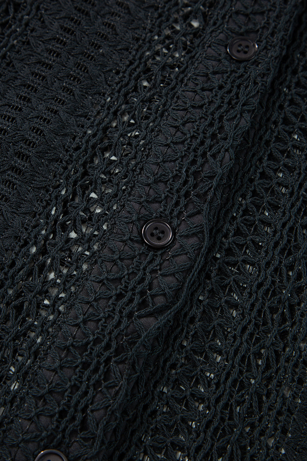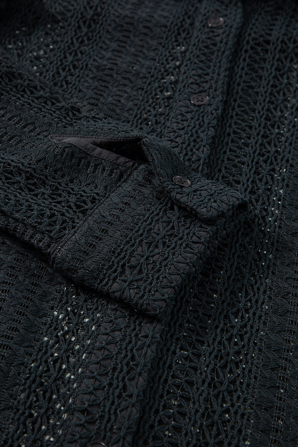 Black Lace Crochet Collared Tunic Oversized Shirt