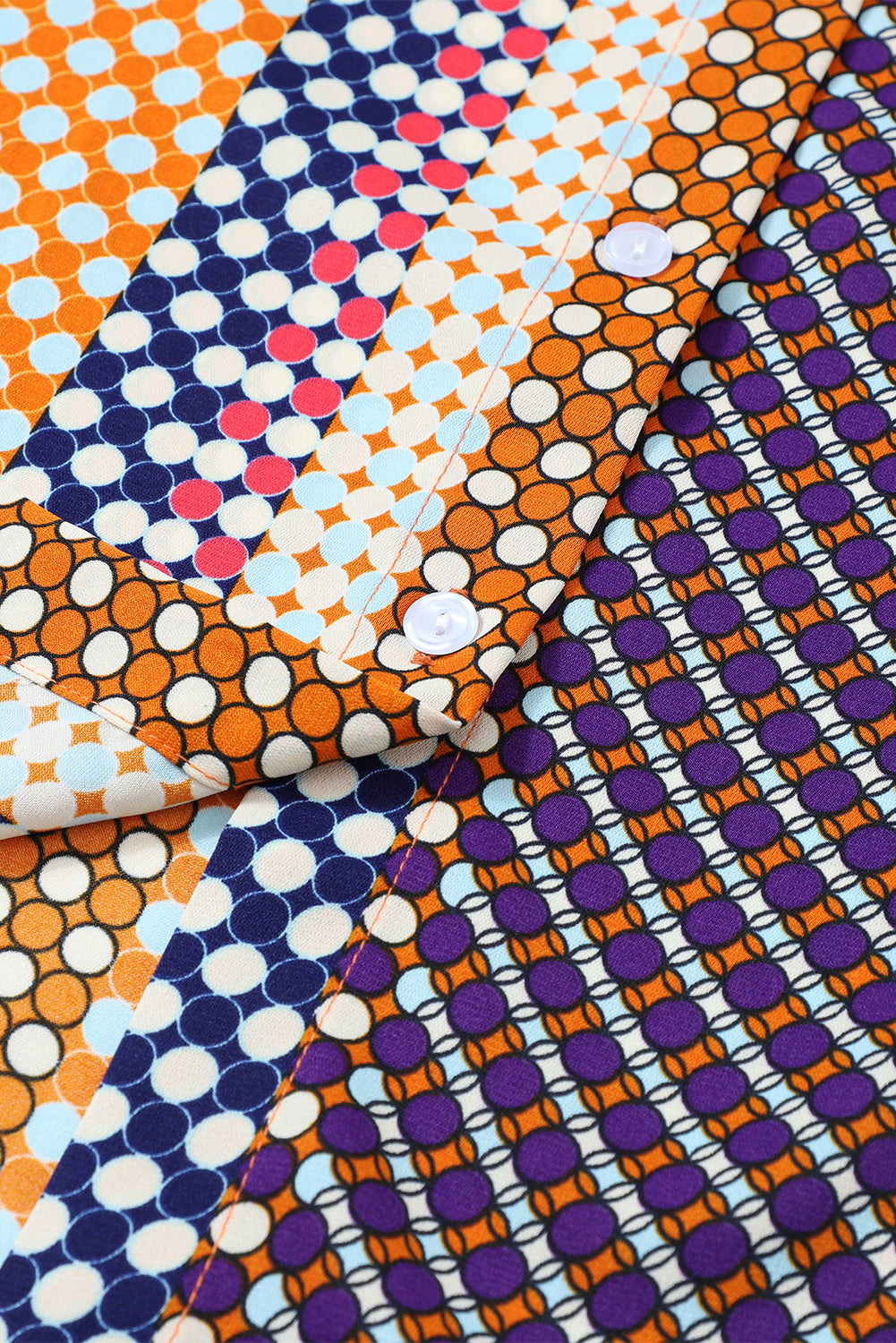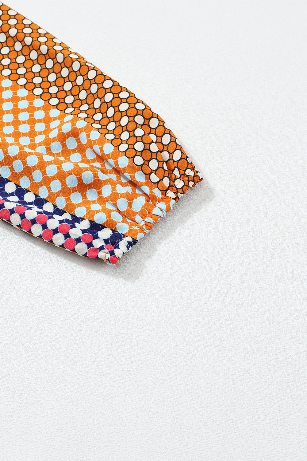 Brown Dot Print Long Sleeve Button Down Shift Shirt