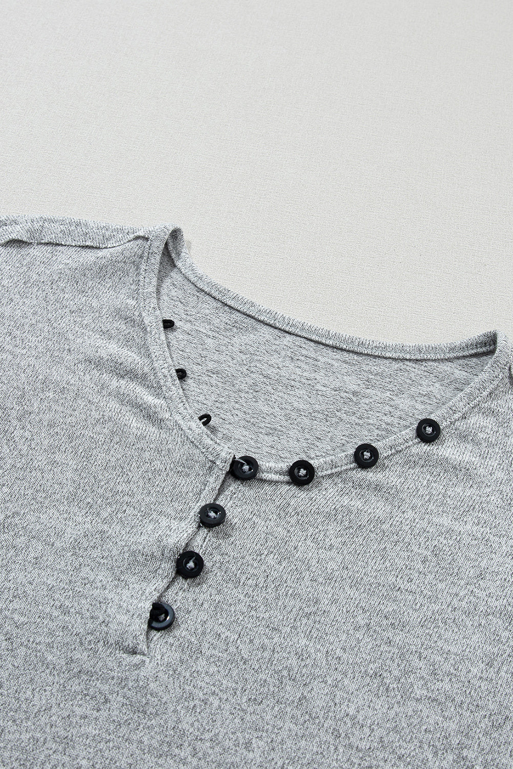Gray Floral Lantern Sleeve Patchwork Buttoned V Neck Top