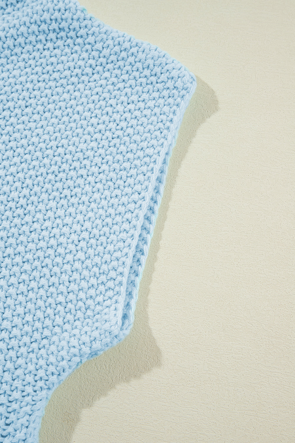 Iceland Blue High Neck Bat Short Sleeve Sweater