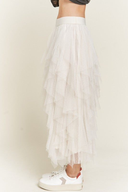 LAYERED POLKA DOT MESH LINED A-LINE MIDI SKIRT