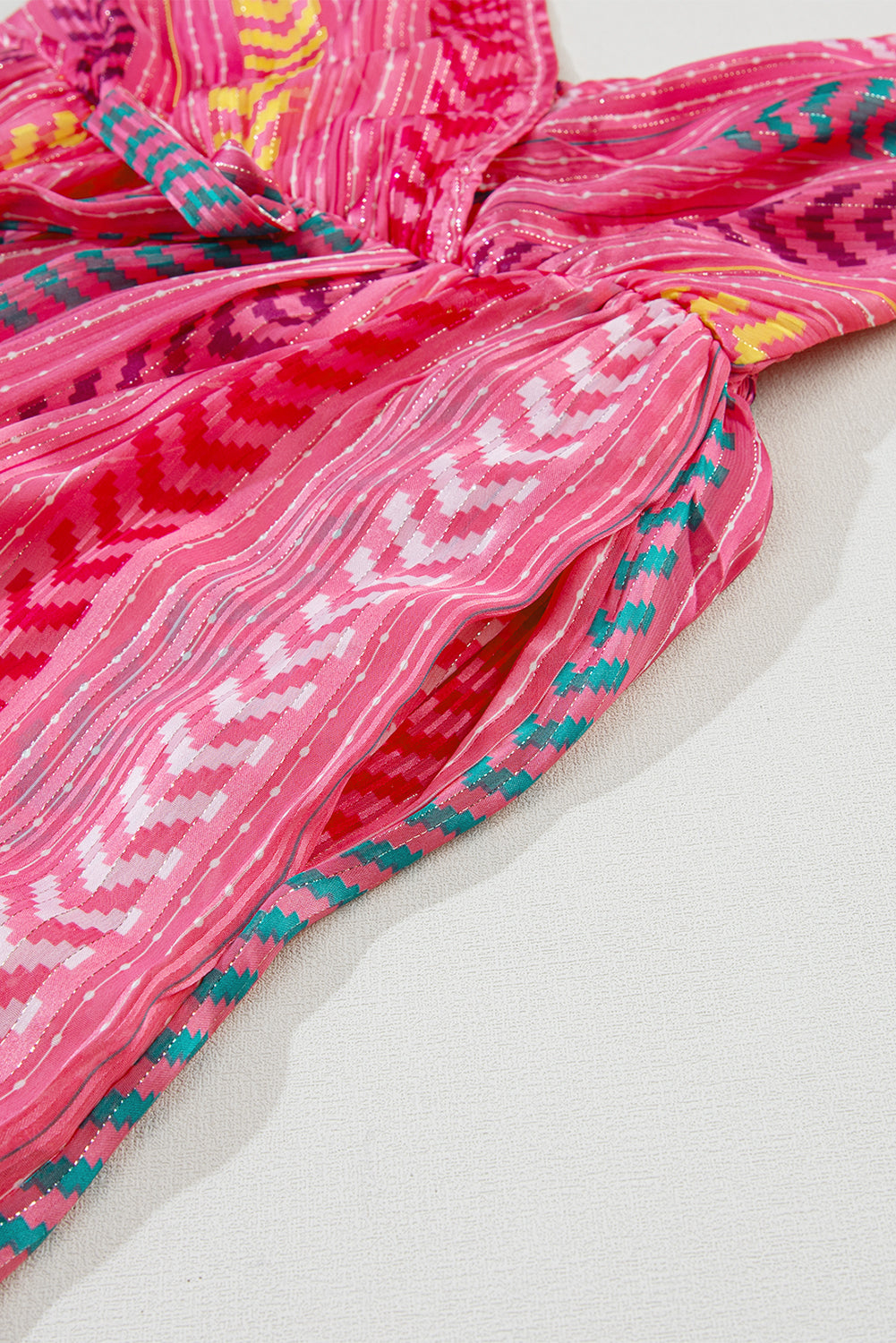 Pink Western Printed Tassel Tie V Neck Wrap Maxi Dress