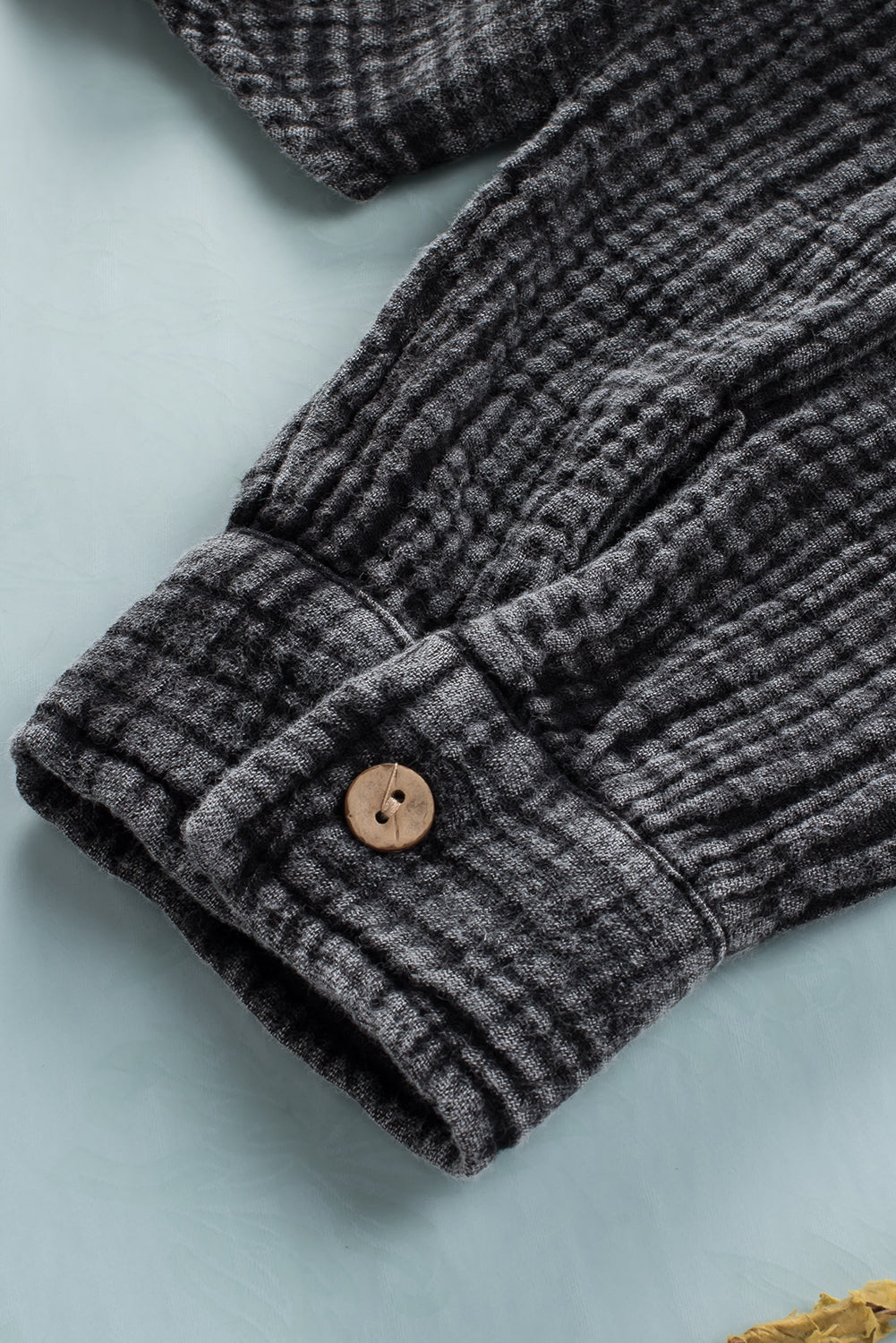 Sky Blue Mineral Wash Crinkle Textured Chest Pockets Shirt